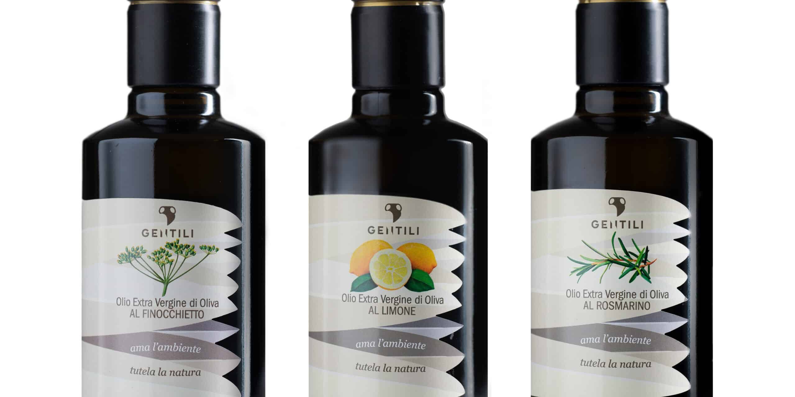 Dopo anni di tentativi, fatti con prodotti diversi (diverse tipologie di limone), ora Romolo grazie ad un fruttivendolo locale sembra abbia trovato la giusta alchimia, un prodotto più che adatto per il matrimonio con il suo olio. Frutto di un lungo lavoro di sperimentazione tra le sue cultivar (olive) che lo ha portato ad ottenere un prodotto fresco ed equilibrato adatto per molti generi di condimenti. Freschi limoni scelti, la cui scorza entra nel processo di lavorazione delle olive fin dalla macerazione, per ottenere un olio EVO di qualità superiore che mantiene i giusti sentori di limone per piatti freschi, crudi di pesce, carpacci e battute di carne, insalate. Quella al finocchietto, chiude la linea degli oli aromatizzati Gentili.
