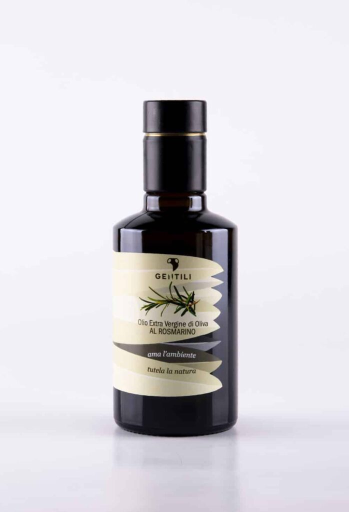 Negli ultimi anni i prodotti aromatizzati a base di olio extravergine sono aumentati a dismisura. Sono diverse le aziende che tra le proprie produzioni offrono una linea di olio aromatizzato, che sia all’aroma di aglio, peperoncino o limone, è accertato che la produzione degli aromatizzati è cresciuta tantissimo negli ultimi anni. Potremmo pensare ad una moda alimentare del momento, magari dettata da scelte di marketing o di mercato, oppure possiamo analizzare la scelta in maniera più essenziale per scoprire che è anche molto comodo avere un olio aromatizzato al rosmarino, che offre la possibilità di garantire diversi generi di condimenti con un prodotto solo. Pensiamo a chi magari vive in città e non sempre ha a disposizione o si è ricordato di acquistare gli odori o spezie, avere degli oli aromatizzati può costituire un gran vantaggio in tutte le occasioni. Poi c’è l’aspetto del gusto e anche questa variabile può incidere sulle scelte, un prodotto di alta qualità che in un aromatizzato trova l’alchimia vincente, ha un indiscusso potenziale di successo. Questa la strada percorsa anche da Romolo Gentili, patron del frantoio Gentili che, all’inizio del 2023 lancia la sua nuova linea di olio EVO aromatizzato. Le particolarità delle tre produzioni di aromatizzati Gentili, stanno nella materia prima utilizzata e nel processo di lavorazione che avviene non per infusione ma per macerazione sia dell’oliva che del frutto o pianta scelti per l’aroma. Partiamo dall’aromatizzato al rosmarino.