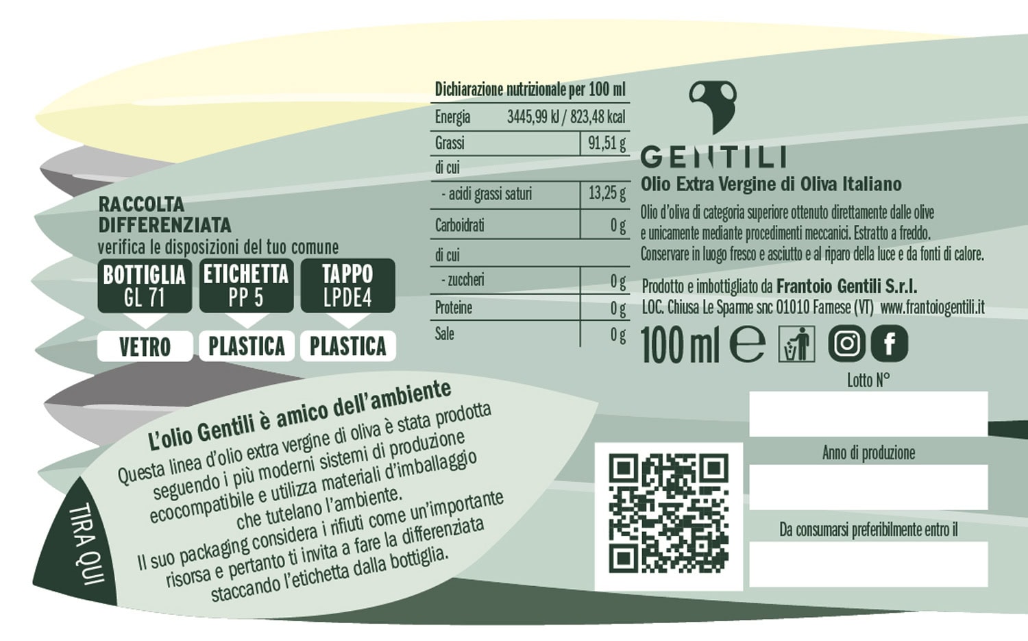 Olio Fruttato bottiglia 100ml quantità